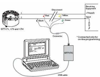 The STT17C configures the STT171, STT173 and STT17H temperature transmitters. The intuitive graphical user interface of the STT17C virtually eliminates the need for operator training after installation on a PC. The STT17C includes all software and transmitter interface hardware necessary to configure the STT171, STT173 and STT17H in non-hazardous work environments.
